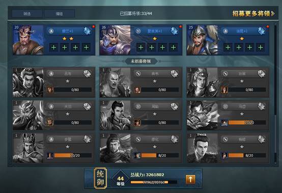 2. 将领资质:将领资质越高,将领拥有的三维属性则越高,同时也代表将领的珍稀度越高,是需要主要培养的将领。