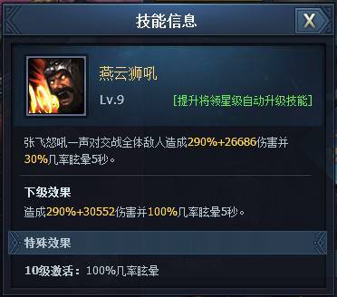大部分将领拥有4个技能,通过将领进阶可逐步解锁技能。将领升星可以将自身所有技能等级提升,大幅度提高作战能力。