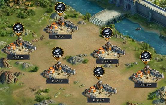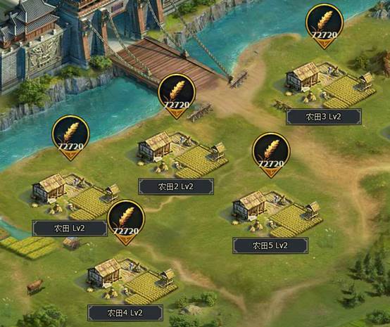 封地建筑产出是玩家日常资源的主要获得途径,建筑等级的提升可获得更多资源。