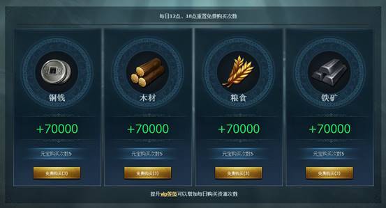 6. 辎重站能提供免费购买资源次数,玩家通过辎重站能获得大量的资源。